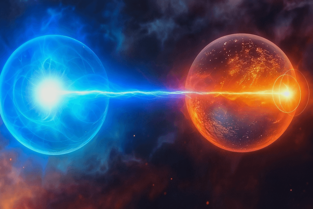 • Quantum Entanglement: Once two particles interact, they remain connected even across vast distances. This suggests that healing intention can influence biological systems non-locally.